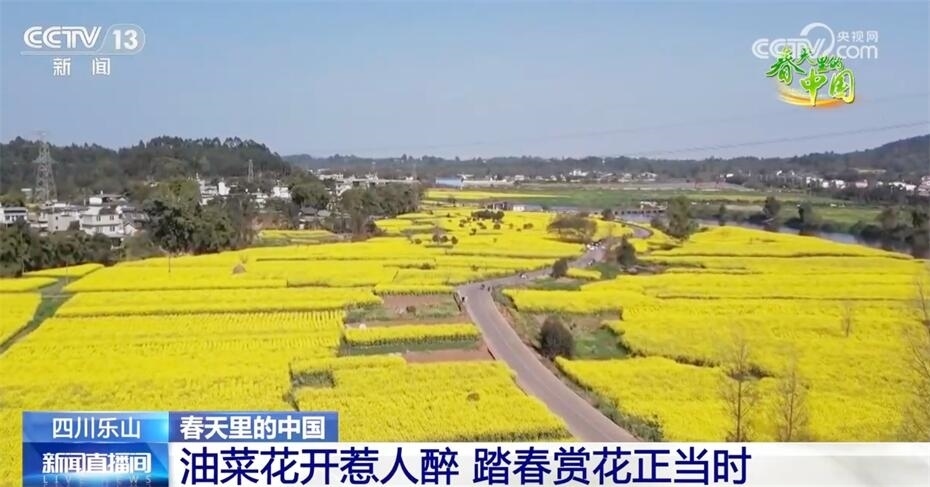 遠(yuǎn)眺峨眉山,近看峨眉河,萬(wàn)頃金波花如海,流金溢彩百里香。現(xiàn)在我們看到的是四川樂(lè)山市中區(qū) 永和村的近千畝油菜花,在陽(yáng)光照射下,猶如斑斕的綢帶,妝點(diǎn)了峨眉河沿岸五彩的山色春光。趁著晴好天氣,市民、游客來(lái)到戶(hù)外踏青賞景,在花田中徜徉流連,感受春日美好時(shí)光。