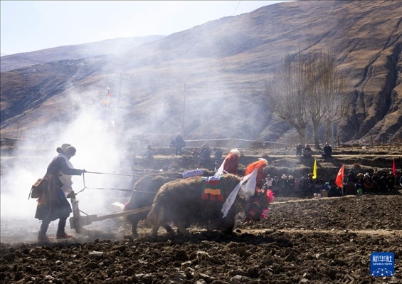 這是3月16日拍攝的西藏山南市瓊結縣加麻鄉(xiāng)加麻村的春耕儀式現(xiàn)場。新華社記者 旦增尼瑪曲珠 攝