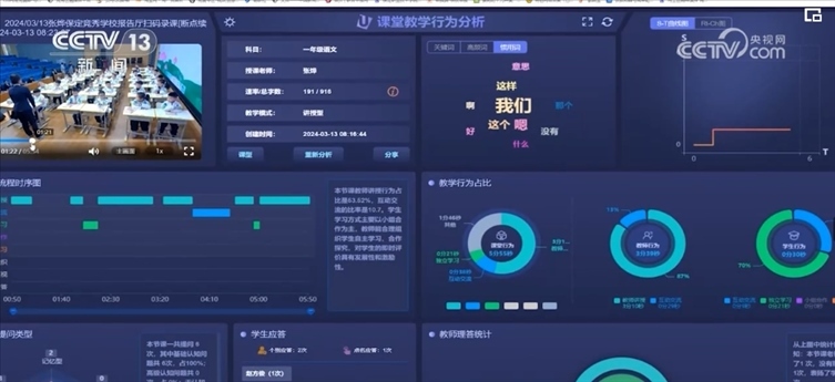 在河北保定競(jìng)秀學(xué)校,一套新引進(jìn)的智慧教學(xué)研一體化系統(tǒng)正在推行。教室里,兩臺(tái)智能攝像機(jī)對(duì)課堂情況進(jìn)行視頻采集,包括高頻詞、師生互動(dòng)、講課語(yǔ)速等元素,通過AI技術(shù)生成課堂大數(shù)據(jù)分析報(bào)告,對(duì)于改進(jìn)教學(xué)方法起到意想不到的效果。
