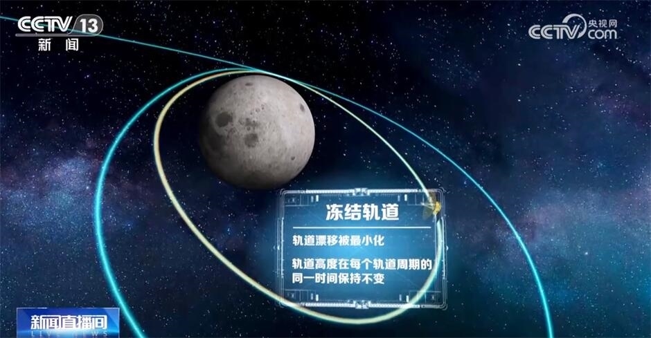 剛才提到了環(huán)月大橢圓凍結(jié)軌道,那什么是凍結(jié)軌道?所謂凍結(jié)軌道是一種特殊的航天器軌道,在這類軌道上運行的航天器,通過恰當(dāng)?shù)卦O(shè)計軌道參數(shù),軌道漂移可以被最小化。通常位于這種軌道上的衛(wèi)星在很長一段時間內(nèi),其軌道高度在每個軌道周期的同一時間是保持不變的。因此,一旦進入這個軌道,鵲橋二號將最大程度地節(jié)省燃料,能夠保證它的軌道的遠月點一直位于月球南極區(qū)域上方,從而確保了它在為期8年的設(shè)計壽命中,長時間、穩(wěn)定地支持后續(xù)南極地區(qū)的探月任務(wù)。