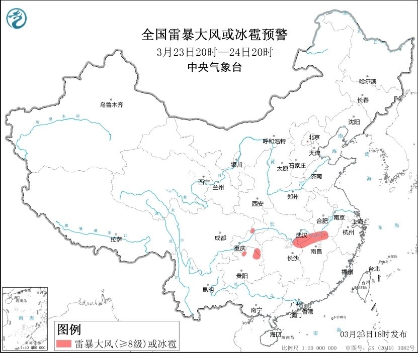 央視網(wǎng)消息:中央氣象臺(tái)3月23日18時(shí)繼續(xù)發(fā)布強(qiáng)對(duì)流天氣藍(lán)色預(yù)警。預(yù)計(jì)3月23日20時(shí)至24日20時(shí),湖北東部、湖南北部、江西北部、重慶東南部、貴州北部等地的部分地區(qū)將有8-10級(jí)雷暴大風(fēng)或冰雹天氣;安徽南部、江蘇南部、湖北東南部、湖南東北部、江西北部、浙江北部、重慶北部等地的部分地區(qū)將有短時(shí)強(qiáng)降水天氣,最大小時(shí)雨量20-40毫米,局地可達(dá)50毫米以上。