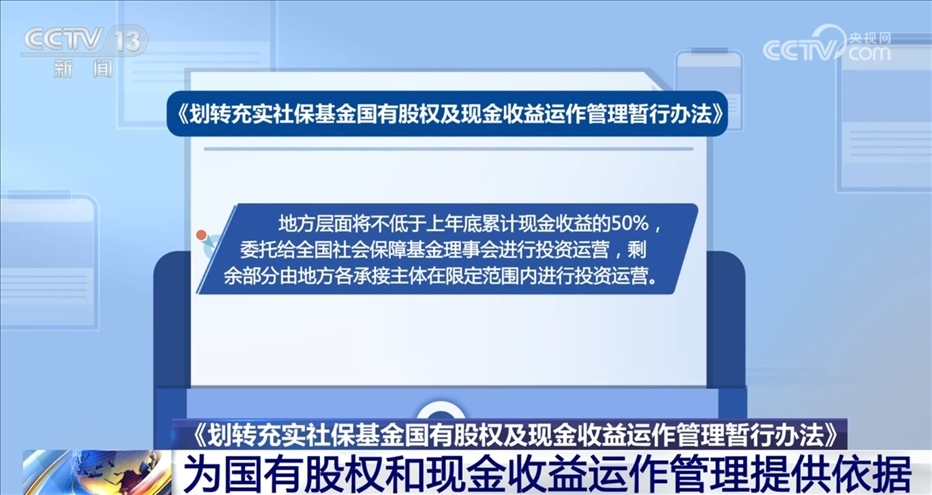 央視網(wǎng)消息:近日,財政部、人力資源社會保障部、國務(wù)院國資委三部門聯(lián)合印發(fā)了《劃轉(zhuǎn)充實社?;饑泄蓹?quán)及現(xiàn)金收益運作管理暫行辦法》(以下簡稱《辦法》)。《辦法》為承接主體開展國有股權(quán)和現(xiàn)金收益運作管理提供了依據(jù)。