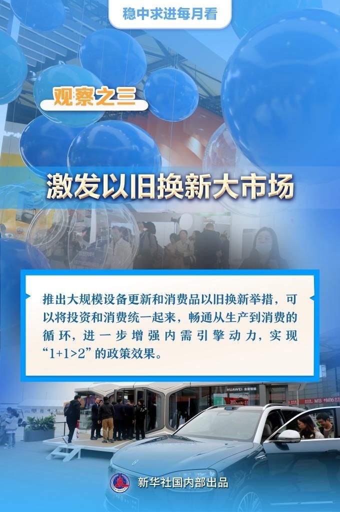 【記者觀察】推出大規(guī)模設(shè)備更新和消費(fèi)品以舊換新舉措,可以將投資和消費(fèi)統(tǒng)一起來(lái),暢通從生產(chǎn)到消費(fèi)的循環(huán),進(jìn)一步增強(qiáng)內(nèi)需引擎動(dòng)力,實(shí)現(xiàn)“1+1>2”的政策效果。