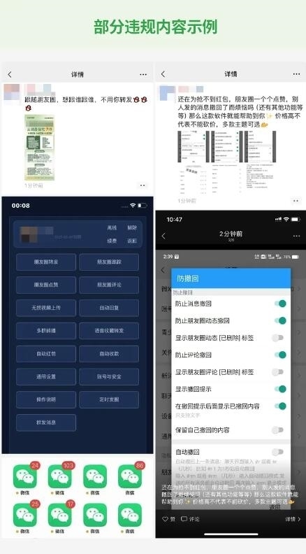 3月26日,微信安全中心發(fā)布《針對在微信使用“外掛”行為的打擊公告》,《公告》指出,根據(jù)《微信個人賬號使用規(guī)范》規(guī)定,微信明確禁止使用各類“外掛”。但近期發(fā)現(xiàn),有部分用戶存在多次違規(guī)使用“外掛”軟件,或在朋友圈發(fā)布“外掛”售賣信息的行為。對此,微信安全團隊進行了專項清理,并將持續(xù)加大清理力度。