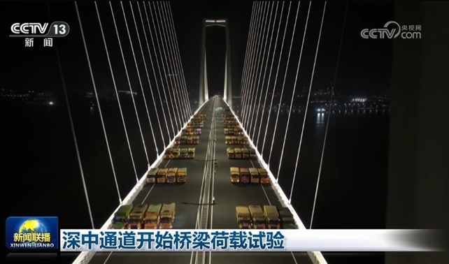 央視網(wǎng)消息(新聞聯(lián)播):今天(4月13日),粵港澳大灣區(qū)超級(jí)工程深中通道進(jìn)入橋梁荷載試驗(yàn)階段。在中山大橋,64輛大貨車(chē)停在橋梁跨中位置,檢測(cè)橋梁位移和應(yīng)力情況,測(cè)試動(dòng)力參數(shù)、汽車(chē)沖擊系數(shù)等。