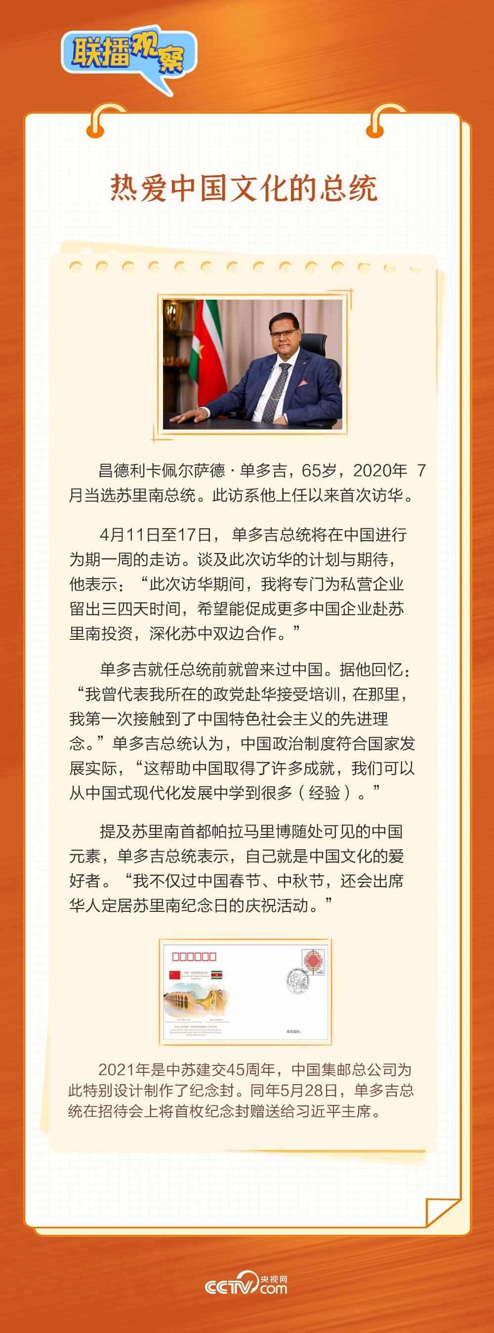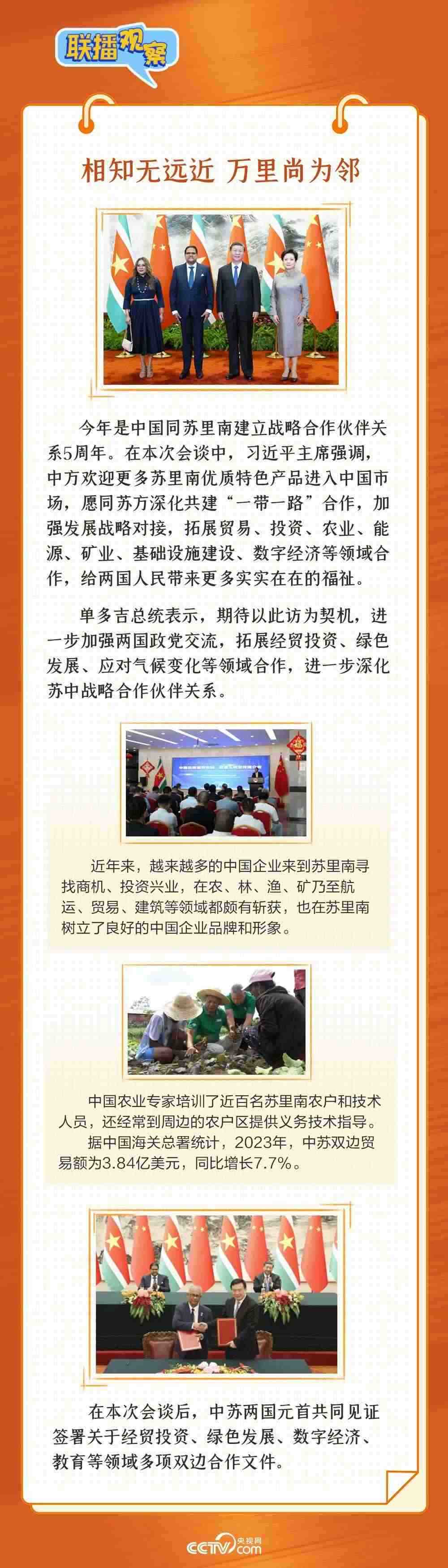 此訪是單多吉總統(tǒng)上任以來首次訪華,這次會(huì)談對(duì)兩國關(guān)系發(fā)展具有怎樣的重要意義?蘇里南又是怎樣的一個(gè)國度?《聯(lián)播觀察》邀您一同了解。