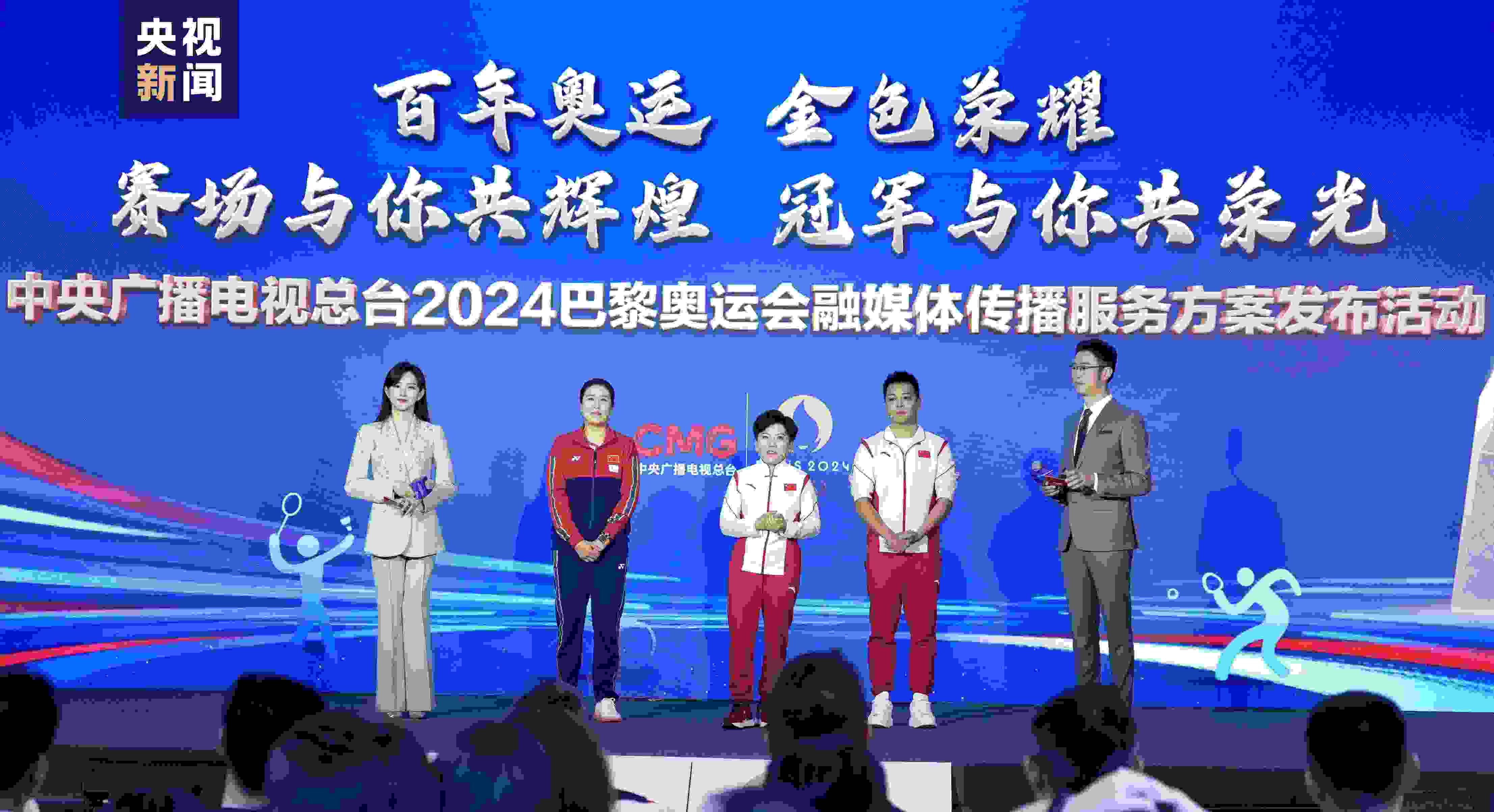 中央廣播電視總臺編務(wù)會議成員兼總經(jīng)理室總經(jīng)理彭健明出席活動,并與總臺財(cái)經(jīng)節(jié)目中心、體育青少節(jié)目中心、視聽新媒體中心、技術(shù)局、新聞新媒體中心、文藝節(jié)目中心、總經(jīng)理室相關(guān)負(fù)責(zé)人,奧運(yùn)冠軍鄧亞萍、高崚、何沖,東鵬飲料(集團(tuán))股份有限公司、寶潔(中國)有限公司、安利(中國)日用品有限公司、上海百雀羚日用化學(xué)有限公司、小紅書科技有限公司、安踏(中國)有限公司相關(guān)負(fù)責(zé)人等,共同啟動總臺2024巴黎奧運(yùn)會體育營銷。