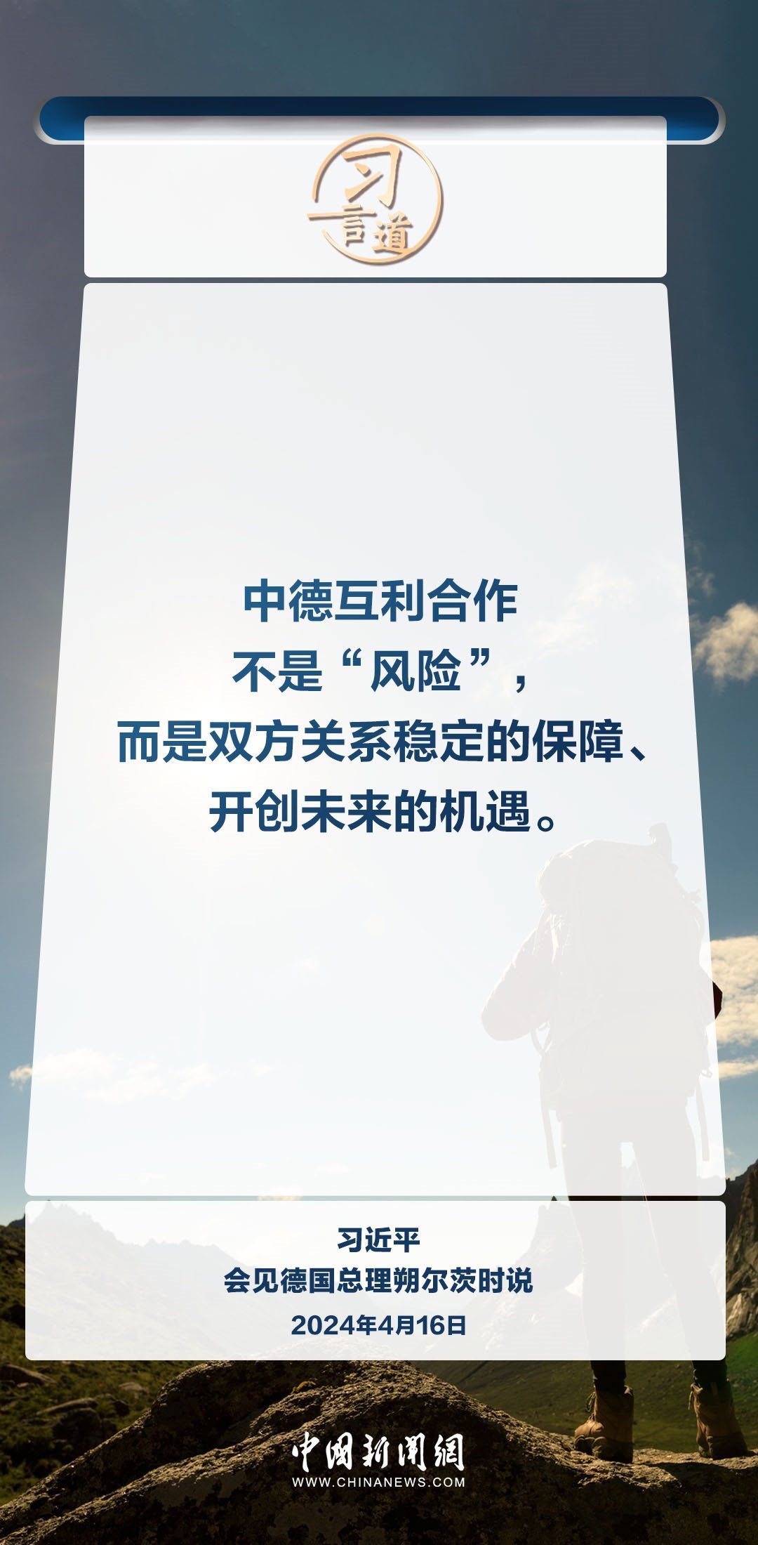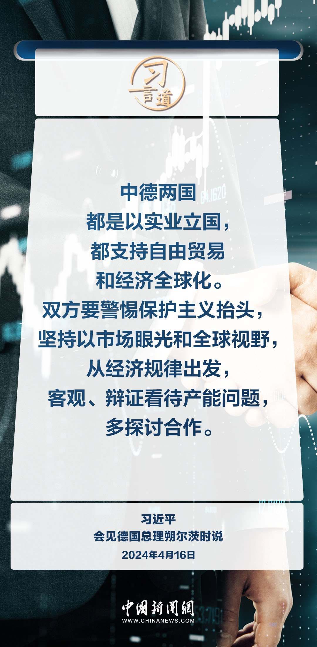 4月16日上午,國家主席習近平在北京釣魚臺國賓館會見德國總理朔爾茨。習近平指出——