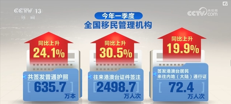 2024年一季度,全國移民管理機(jī)構(gòu)共簽發(fā)普通護(hù)照635.7萬本,往來港澳臺(tái)證件簽注2498.7萬人次,簽發(fā)港澳臺(tái)居民來往內(nèi)地(大陸)通行證72.4萬人次,同比分別上升24.1%、30.5%、19.9%。