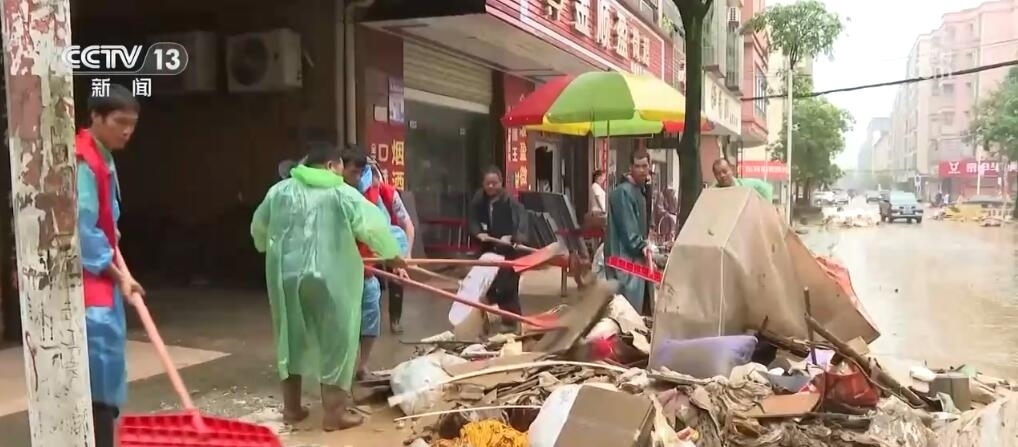 在清遠英德市浛洸鎮(zhèn),被浸了兩天多的鎮(zhèn)區(qū)已經全部退水,當地組織黨員干部投入清淤工作,同時加緊時間進行清洗和消殺。