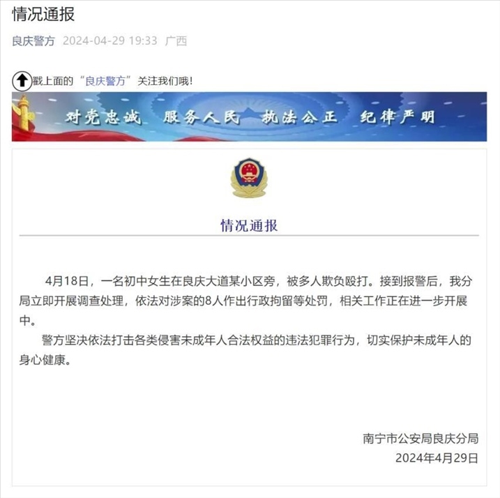·廣西南寧一中學(xué)發(fā)生欺凌事件,涉案8人被給予行政拘留等處罰。