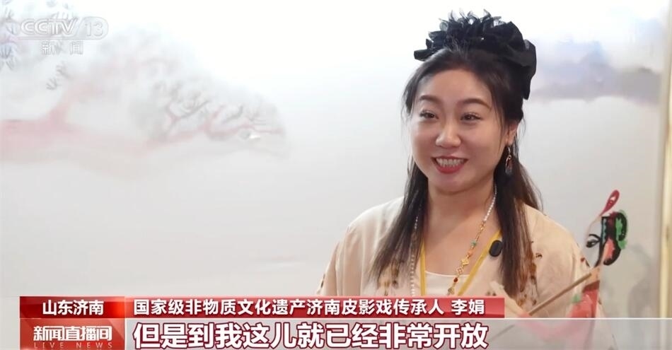 國家級非物質文化遺產濟南皮影戲傳承人李娟稱:“濟南皮影世世代代傳承,傳到我這兒是五代了,過去叫傳男不傳女,但是到我這兒就已經非常開放,女孩也可以學皮影。我就想實現我的夢想,讓更多的女孩子有機會接觸到皮影,在濟南這么美麗的百花洲,我們就在這里成立了一個皮影女團,有很多年輕的女孩通過學習皮影,甚至看演出的時候她只是一個觀眾,她發(fā)現皮影非常有意思,就非常希望能夠加入到我們團隊里來,幫著我們一起去傳承發(fā)展皮影?!?/p>