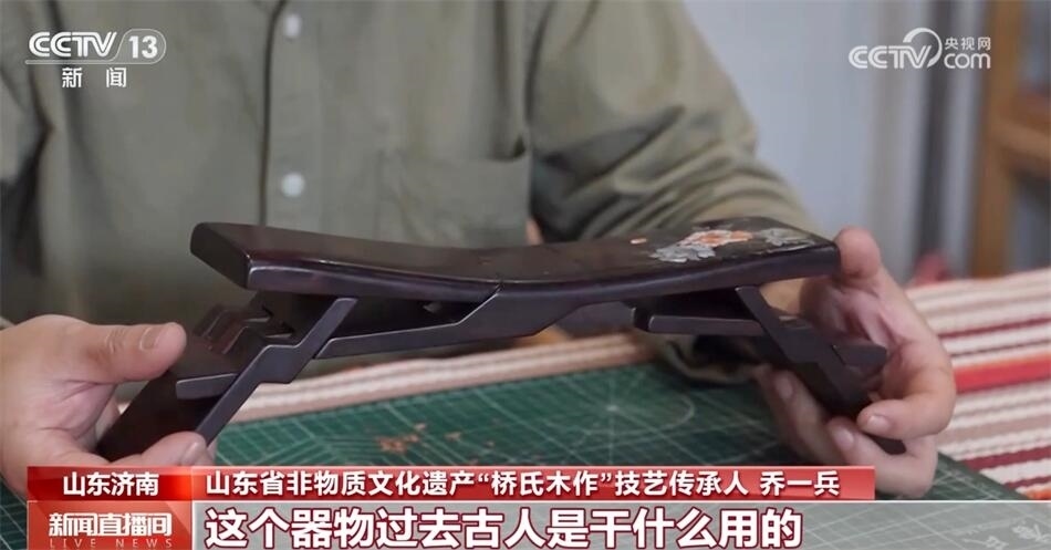 山東省非物質文化遺產“橋氏木作”技藝傳承人喬一兵介紹:“它本身是一整塊木頭六個面,通過鋸和鑿形成一個器物。這個器物過去古人是干什么用的?當枕頭用的,也可以當凳子用,它最大的特點是可以折疊,攜帶非常方便,傳說是魯班發(fā)明的。和眾多的優(yōu)秀的傳統(tǒng)技藝一樣,它深層次代表的是中國的一些思想、一些哲學、一些文化在里邊,魯班枕的核心是平衡和和諧,我覺得我很有必要把它傳承下來,發(fā)揚光大?!?/p>