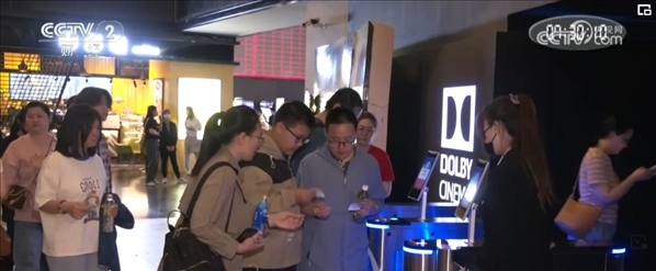 記者在北京五棵松的一家影院看到,多個放映廳檢票處觀眾正排著長隊檢票入場。