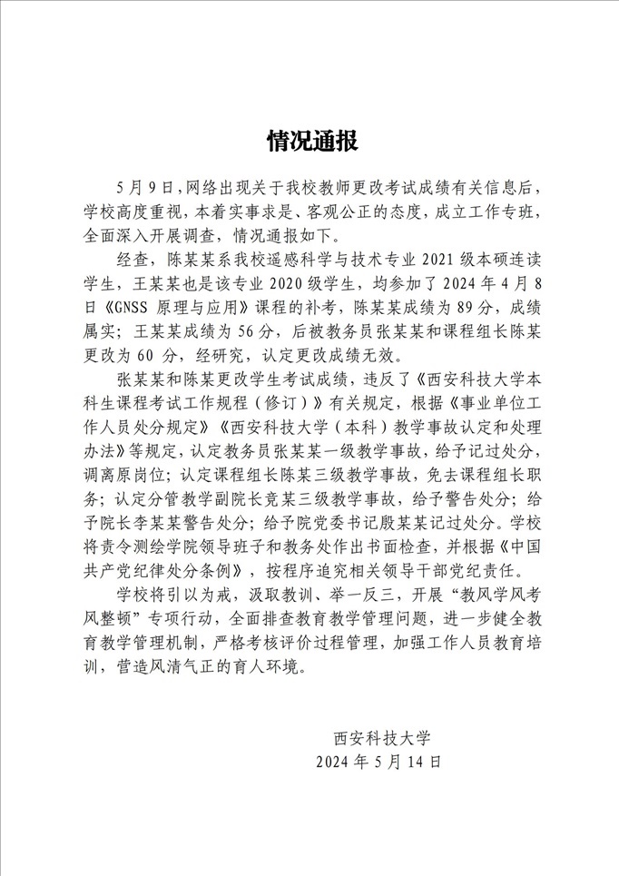 ·學(xué)生成績(jī)按“鬧”修改?西安科大通報(bào):更改成績(jī)無效,多人被處分。
