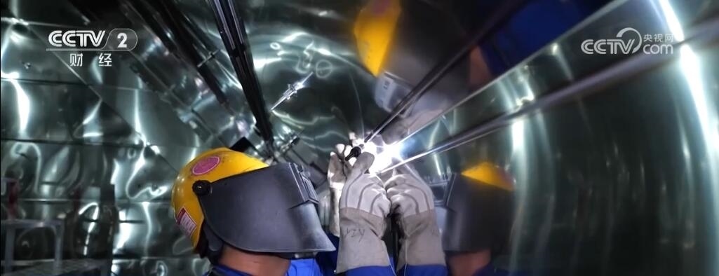 上海市長(zhǎng)興島造船基地,記者身后的巨輪是我國(guó)新一代天然氣運(yùn)輸船“綠能瀛”,它總長(zhǎng)299米,寬度是46.4米,這一艘船的用鋼量就達(dá)到了25000噸,其甲板面積相當(dāng)于3個(gè)標(biāo)準(zhǔn)足球場(chǎng),可裝載17.4萬立方米液化天然氣,能夠滿足700萬個(gè)家庭一個(gè)月的用氣需求。
