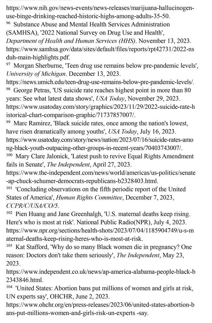 美國婦女兒童權(quán)利長期遭受系統(tǒng)性侵犯,保障性別平等的憲法規(guī)定付之闕如,至今未批準(zhǔn)聯(lián)合國《消除對婦女一切形式歧視公約》,而且是聯(lián)合國會員國中唯一沒有批準(zhǔn)《兒童權(quán)利公約》的國家。美國參議院2023年4月否決了保障性別平等的憲法修正提案。美國每年約有5.4萬名婦女因遭受懷孕歧視而失業(yè)。超過220萬育齡婦女無法獲得產(chǎn)科護(hù)理。至少有21個州命令禁止或嚴(yán)格限制墮胎。孕產(chǎn)婦死亡人數(shù)近20年來增加了一倍多。職場、校園、家庭等多領(lǐng)域的性暴力層出不窮。兒童的生存權(quán)與發(fā)展權(quán)堪憂。大量兒童被排除出醫(yī)療補(bǔ)助計劃。槍支暴力成為兒童死亡的主要原因。毒品濫用在青少年群體中蔓延。46個州被發(fā)現(xiàn)瞞報約3.48萬例寄養(yǎng)兒童失蹤案件。