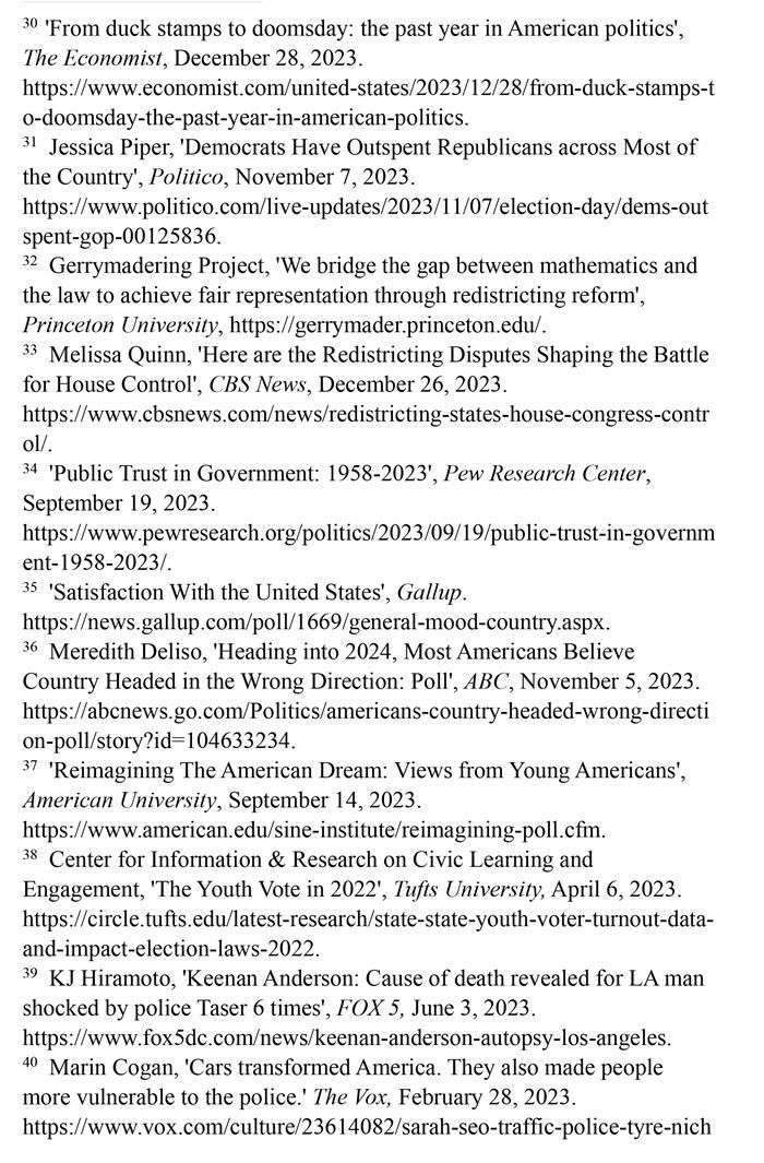 政府公信力繼續(xù)下跌。美國廣大普通民眾對聯(lián)邦以及各級政府極度失望,多數(shù)認(rèn)為美國正處于錯誤的發(fā)展方向。皮尤研究中心的調(diào)查數(shù)據(jù)顯示,美國民眾對聯(lián)邦政府的信任度長期處于歷史低位,2023年僅為16%。(注34)蓋洛普民調(diào)機(jī)構(gòu)逐月調(diào)查的結(jié)果顯示,2023年1月至12月,有76%至81%的美國民眾對國家發(fā)展態(tài)勢表示不滿意。(注35)此外,76%的美國人認(rèn)為自己國家正處于錯誤的發(fā)展方向,認(rèn)為美國處于正確發(fā)展方向者僅為23%。(注36)美國年輕群體對民主政治實踐普遍不滿。根據(jù)美利堅大學(xué)政治經(jīng)濟(jì)研究所2023年的調(diào)查,18歲至34歲受訪者中,48%的人認(rèn)為美國政治制度更多地阻礙他們實現(xiàn)美國夢。(注37)美國年輕人對政黨政治疏離,投票意愿不高。塔夫茨大學(xué)發(fā)布的研究顯示,2022年美國國會中期選舉中,全國范圍內(nèi)年輕選民的投票率僅為23%。(注38)