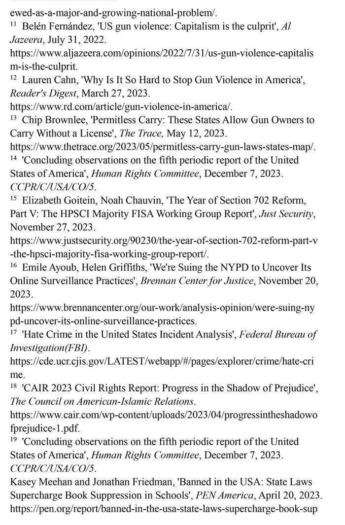 政府濫用權(quán)力監(jiān)控公民隱私。聯(lián)合國人權(quán)事務(wù)委員會指出,美國《涉外情報監(jiān)視法》第702條的范圍過于寬泛,該法不僅允許美國執(zhí)法人員監(jiān)視外國人的電子通信,執(zhí)法人員還可能利用法律漏洞在沒有搜查令的情況下獲取大量美國公民的通訊信息(即“后門搜查”),并且缺乏明確透明的監(jiān)督機(jī)制。(注14)美國眾議院情報委員會2023年11月16日發(fā)布的報告顯示,美國聯(lián)邦調(diào)查局將《涉外情報監(jiān)視法》第702條規(guī)定轉(zhuǎn)用于進(jìn)行國內(nèi)監(jiān)控,“廣泛而持續(xù)地”監(jiān)控國會議員、國會競選活動捐助者以及反種族主義抗議者的通訊。(注15)布倫南司法中心網(wǎng)站2023年11月20日報道,十幾年來,紐約警察局濫用社交媒體從事非法活動,包括監(jiān)視公共集會、在沒有證據(jù)的情況下跟蹤公民個人及其聯(lián)系人等,而這些行為并未受到監(jiān)督和問責(zé)。(注16)