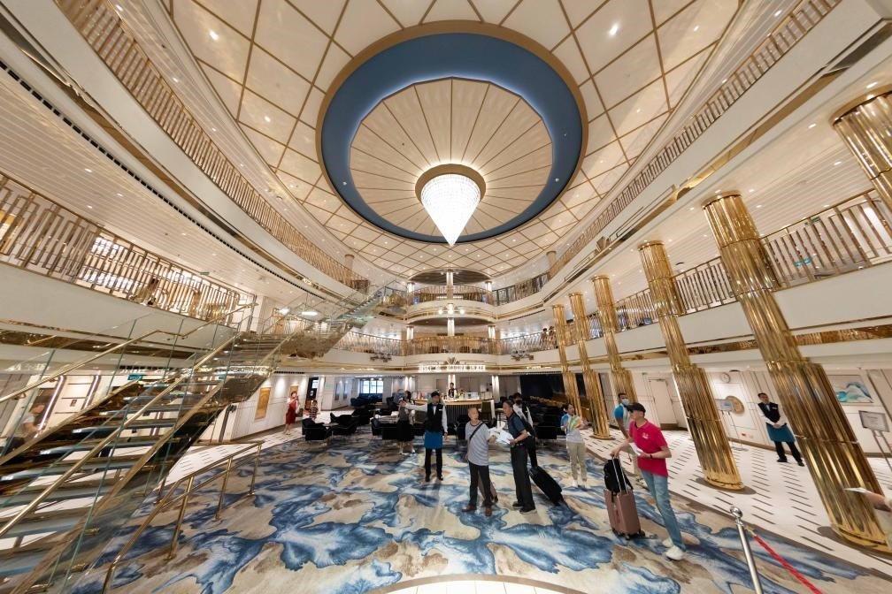 5月26日拍攝的國產(chǎn)大型郵輪“愛達(dá)·魔都號(hào)”愛達(dá)廣場。新華社記者 王翔 攝