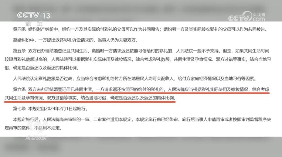 陜西省韓城市人民法院芝陽(yáng)人民法庭庭長(zhǎng)王春妮:“我們跟原告充分釋法明理,讓他知道咱們國(guó)家有新的規(guī)定,對(duì)他經(jīng)過(guò)反復(fù)做工作,他也降低了自己的心理預(yù)期。被告這邊認(rèn)為我跟你在一起共同生活了,我也是實(shí)心想跟你過(guò)日子,但是因?yàn)闆](méi)有領(lǐng)證,而且我還跟你共同生育了一個(gè)孩子,你現(xiàn)在要求我給你返還彩禮,我就不愿意返還,心里有抵抗情緒?!?/p>