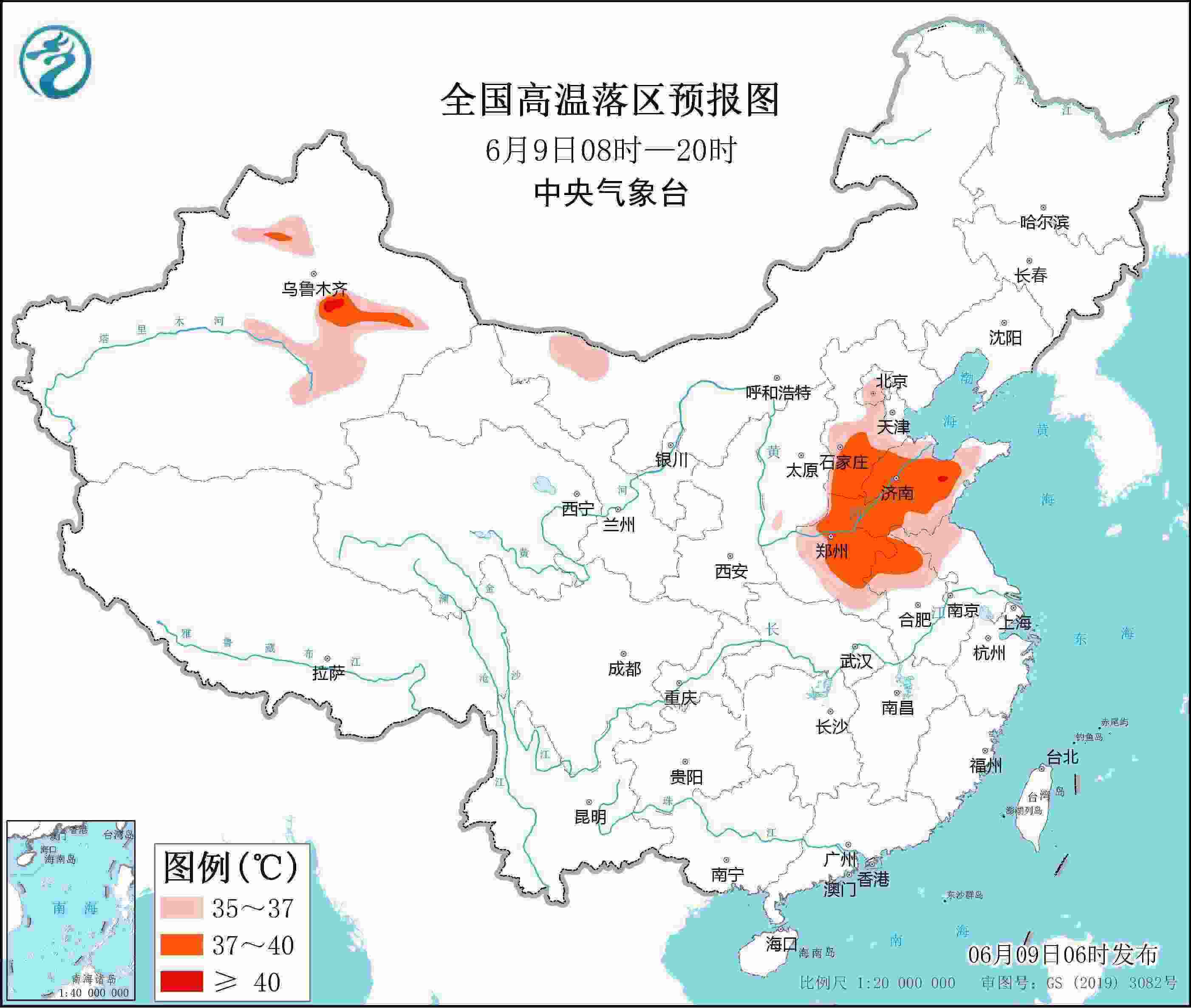央視網(wǎng)消息:中央氣象臺6月9日06時繼續(xù)發(fā)布高溫黃色預(yù)警。預(yù)計6月9日白天,內(nèi)蒙古西部、新疆沿天山地區(qū)和南疆盆地、河北中南部、北京、天津西部和南部、山東大部、河南大部、安徽北部、江蘇北部等地有35~36℃高溫天氣,其中,新疆北疆沿天山地區(qū)和吐魯番盆地、河北南部、山東中西部、河南中東部、安徽北部等地部分地區(qū)最高氣溫37~39℃,局地可達(dá)40℃以上。