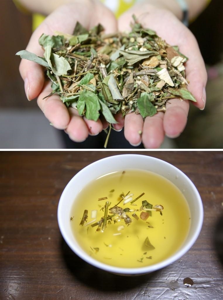 2017年5月25日在浙江松陽拍攝的端午茶。端午茶又稱“百草茶”,是浙江松陽獨(dú)具特色、歷史悠久的日常飲品,因端午節(jié)前后采選百草晾制而得名,如今是松陽一帶百姓家中常備飲品。據(jù)悉,端午茶無固定配方,全憑百姓結(jié)合自家口味、體征和經(jīng)驗(yàn)制作。