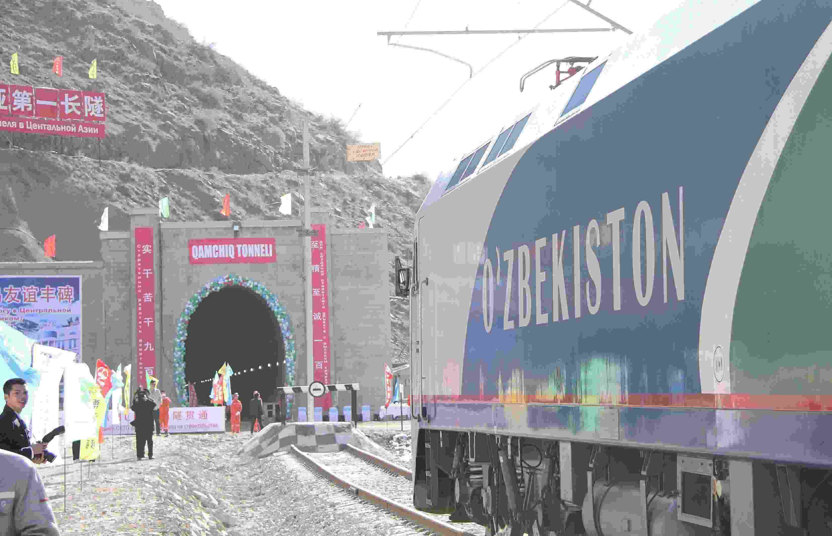 △ 2016年2月27日,一列專(zhuān)列停在烏茲別克斯坦安格連至琶布鐵路甘姆奇克隧道進(jìn)口。甘姆奇克隧道是中吉烏鐵路的重要一環(huán),對(duì)促進(jìn)烏茲別克斯坦經(jīng)濟(jì)社會(huì)發(fā)展和共建“一帶一路”倡議的實(shí)施具有重大意義。