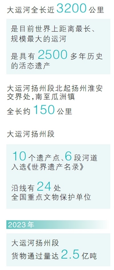 槳聲燈影里,特色民俗展示引得游人駐足;健身步道上,居民休閑健身新空間不斷拓展;水光瀲滟間,人與自然和諧共生的生態(tài)畫卷徐徐鋪展……2014年6月,中國大運(yùn)河成功入選《世界遺產(chǎn)名錄》,其中,江蘇揚(yáng)州共有10個(gè)遺產(chǎn)點(diǎn)、6段河道被列入。近年來,揚(yáng)州持續(xù)加強(qiáng)大運(yùn)河文化傳承保護(hù),不斷推進(jìn)沿岸生態(tài)改善提升,讓古老運(yùn)河煥發(fā)出新的時(shí)代風(fēng)貌。
