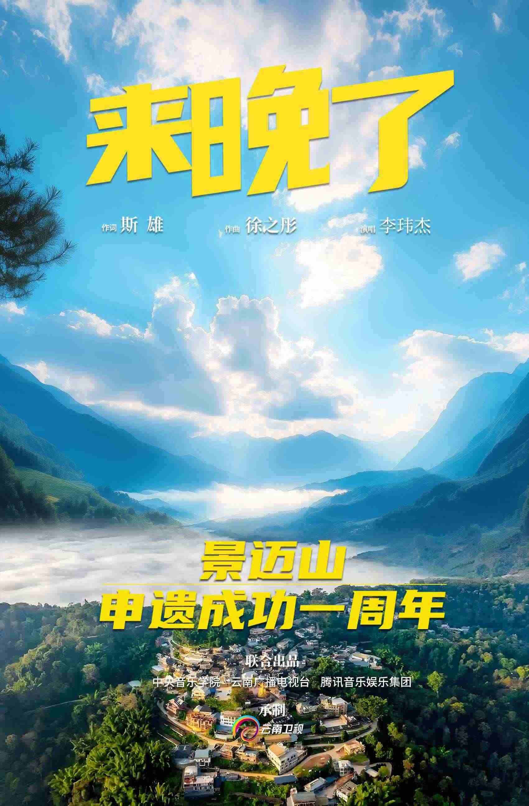 為慶祝景邁山申遺成功一周年,實(shí)景版MV《來晚了》上線啦!實(shí)景版歌曲由資深媒體人斯雄作詞,中央音樂學(xué)院徐之彤教授作曲,云南音樂人李瑋杰演唱。中央音樂學(xué)院、云南廣播電視臺(tái)、騰訊音樂娛樂集團(tuán)聯(lián)合出品,云南衛(wèi)視承制。