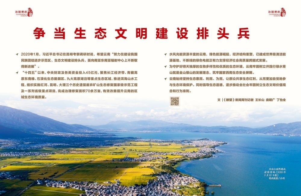 云南切實(shí)把生態(tài)文明建設(shè)擺在全局工作的突出位置,全面加強(qiáng)生態(tài)文明建設(shè),開(kāi)啟美麗云南建設(shè)新征程。2022年5月,《云南省生態(tài)文明建設(shè)排頭兵規(guī)劃(2021—2025年)》發(fā)布,明確爭(zhēng)當(dāng)全國(guó)生態(tài)文明建設(shè)排頭兵目標(biāo)、主要任務(wù)和重大舉措,切實(shí)提升生態(tài)環(huán)境治理體系和治理能力現(xiàn)代化水平,全面形成綠色發(fā)展方式和生活方式。