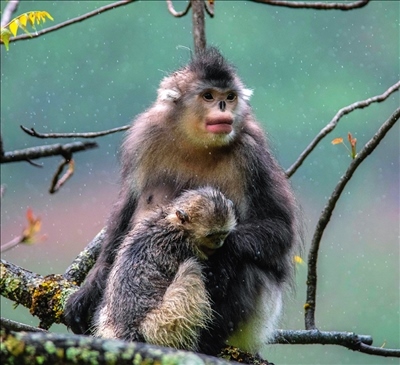 云南迪慶藏族自治州香格里拉滇金絲猴國(guó)家公園里的滇金絲猴(資料照片)胡超攝/本刊