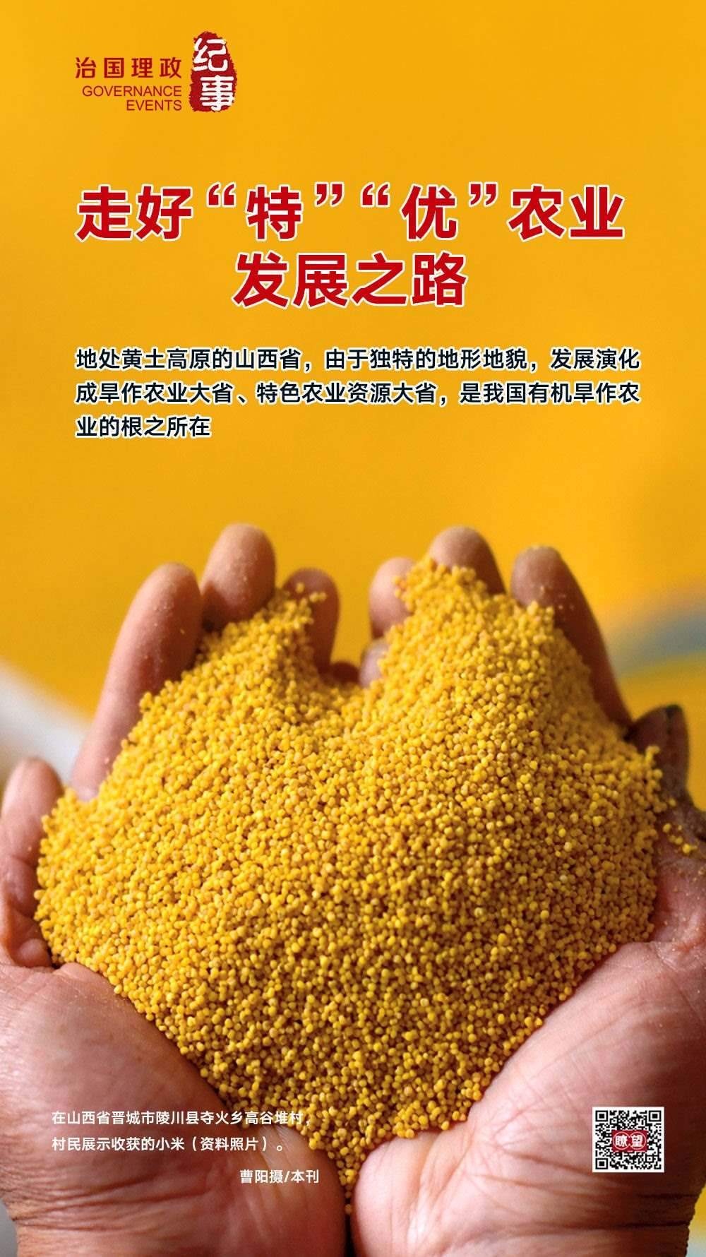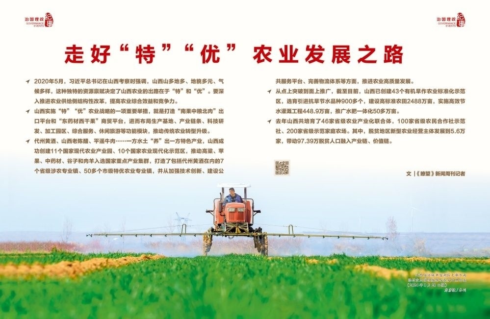 ◇2020年5月,習(xí)近平總書記在山西考察時強調(diào),山西山多地多、地貌多元、氣候多樣,這種獨特的資源稟賦決定了山西農(nóng)業(yè)的出路在于“特”和“優(yōu)”。要深入推進農(nóng)業(yè)供給側(cè)結(jié)構(gòu)性改革,提高農(nóng)業(yè)綜合效益和競爭力。