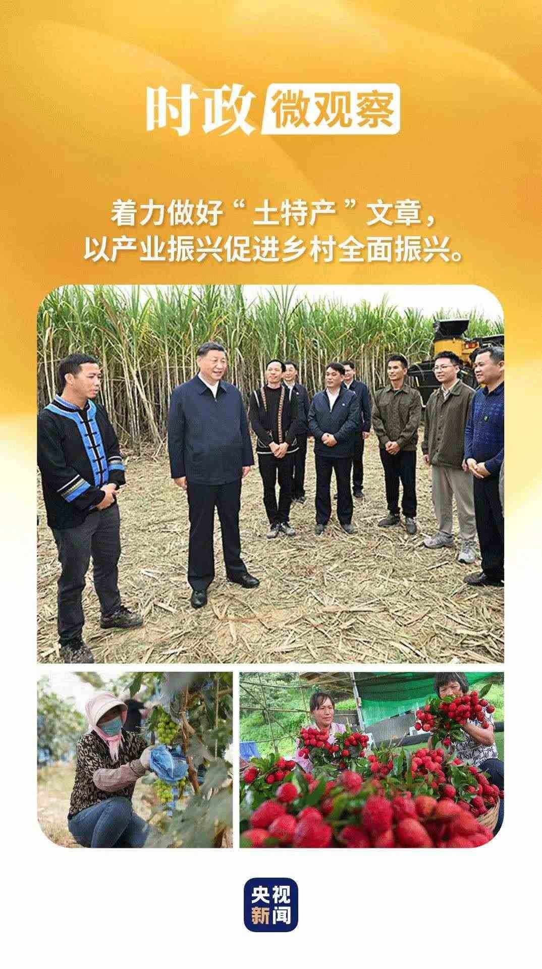 習(xí)近平總書記強調(diào),要著力做好“土特產(chǎn)”文章,以產(chǎn)業(yè)振興促進鄉(xiāng)村全面振興。在地方考察時,他多次來到大棚里、田埂上、果樹間、農(nóng)舍前,為特色產(chǎn)業(yè)謀思路、為農(nóng)民致富找門路。