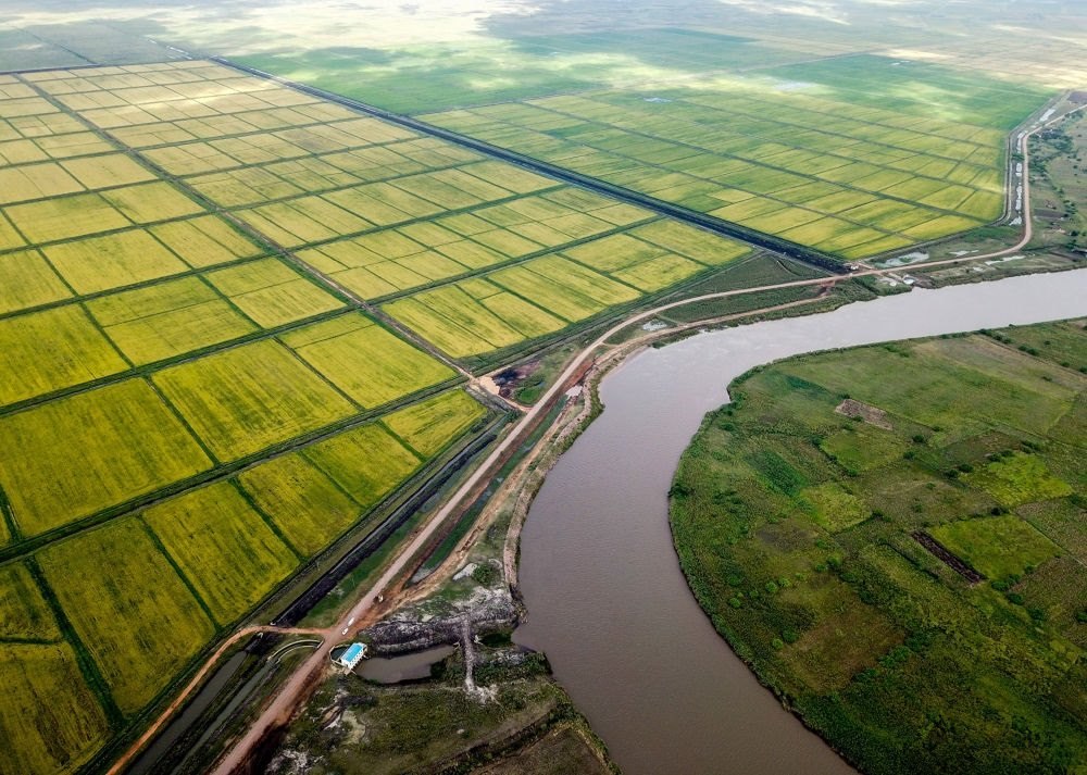 這是莫桑比克萬寶莫桑農業(yè)園的水稻田(2019年4月7日攝,無人機照片)。萬寶莫桑農業(yè)園是中非合作的大型水稻種植項目,極大地緩解了莫桑比克糧食短缺問題。