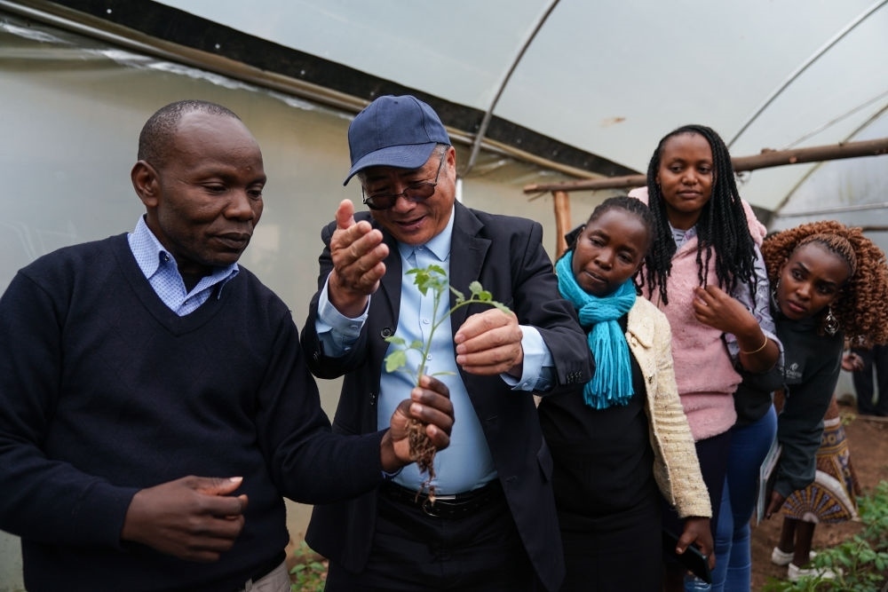 2023年9月18日,在肯尼亞納庫魯郡舉辦的中非農業(yè)發(fā)展和減貧示范村番茄生產培訓班上,來自中國的農學教授劉高瓊(左二)為肯方學員指導農業(yè)技術。多年來,中國農業(yè)專家在當地開展了知識培訓、技術指導和農業(yè)設施修繕等工作,有效助力中國先進的農業(yè)技術在納庫魯地區(qū)的示范推廣,幫助農民實現增收減貧的目標。