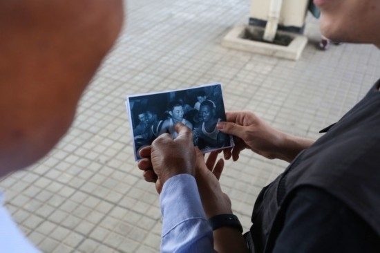恩貢亞尼在看坦贊鐵路建設時期拍攝的老照片。