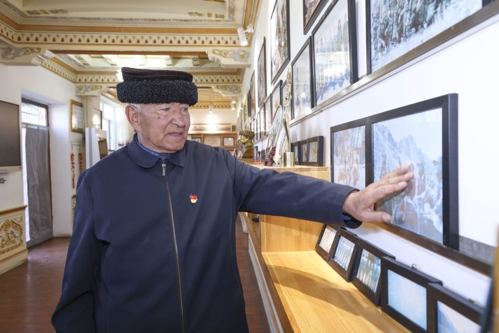 2024年9月15日,在新疆塔什庫爾干塔吉克自治縣提孜那甫鄉(xiāng),巴依卡·凱力迪別克在家中講述護(hù)邊往事。新華社發(fā)(姬文志 攝)