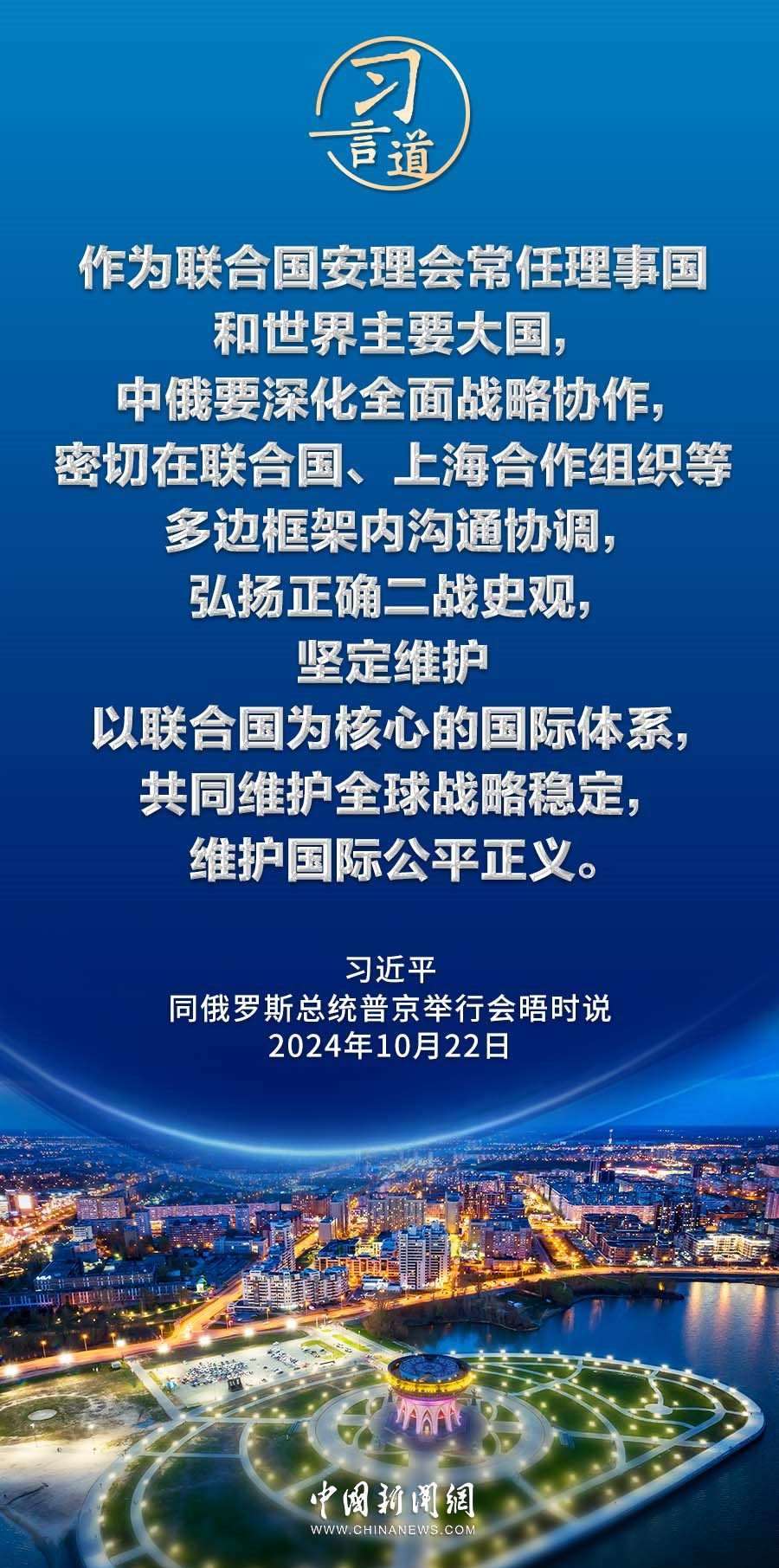 當(dāng)?shù)貢r間10月22日下午,國家主席習(xí)近平在喀山克里姆林宮同俄羅斯總統(tǒng)普京舉行會晤。習(xí)近平指出——