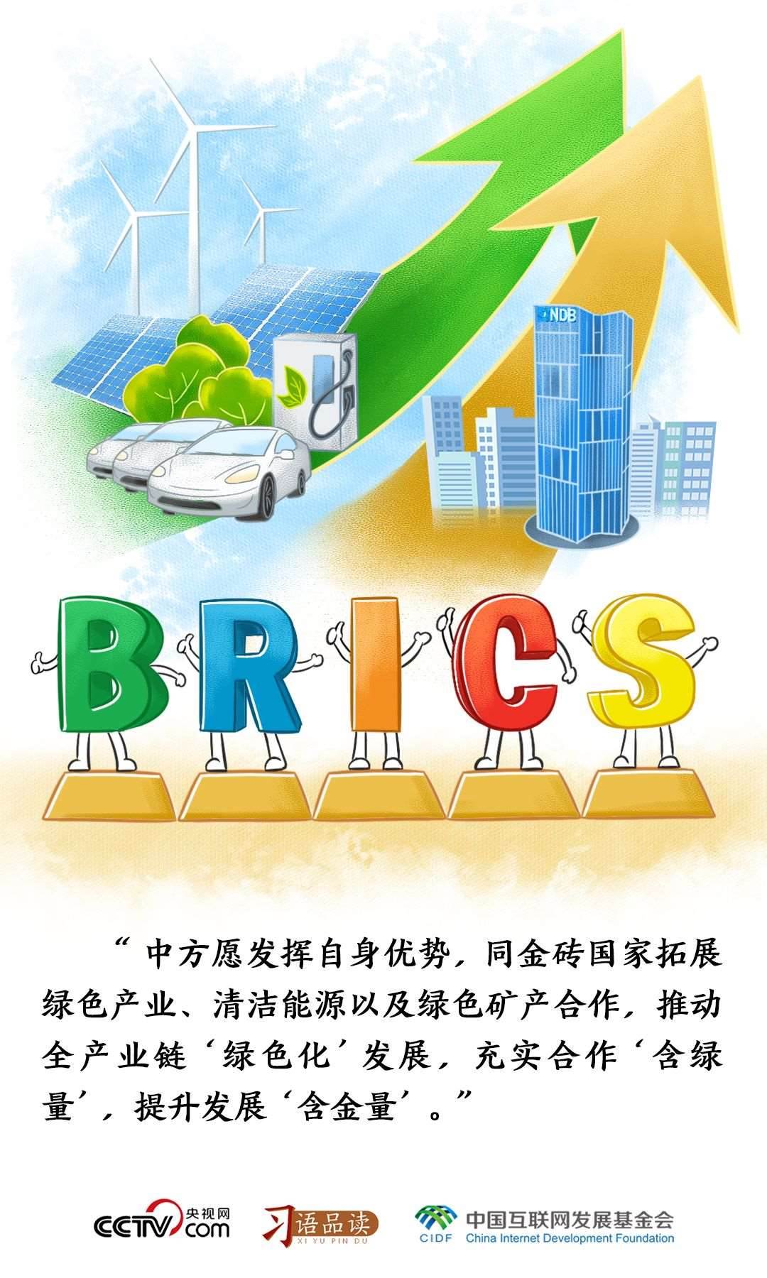 習(xí)主席強(qiáng)調(diào),中方愿同金磚國(guó)家拓展綠色產(chǎn)業(yè)、清潔能源以及綠色礦產(chǎn)合作,推動(dòng)全產(chǎn)業(yè)鏈“綠色化”發(fā)展,充實(shí)合作“含綠量”,提升發(fā)展“含金量”。