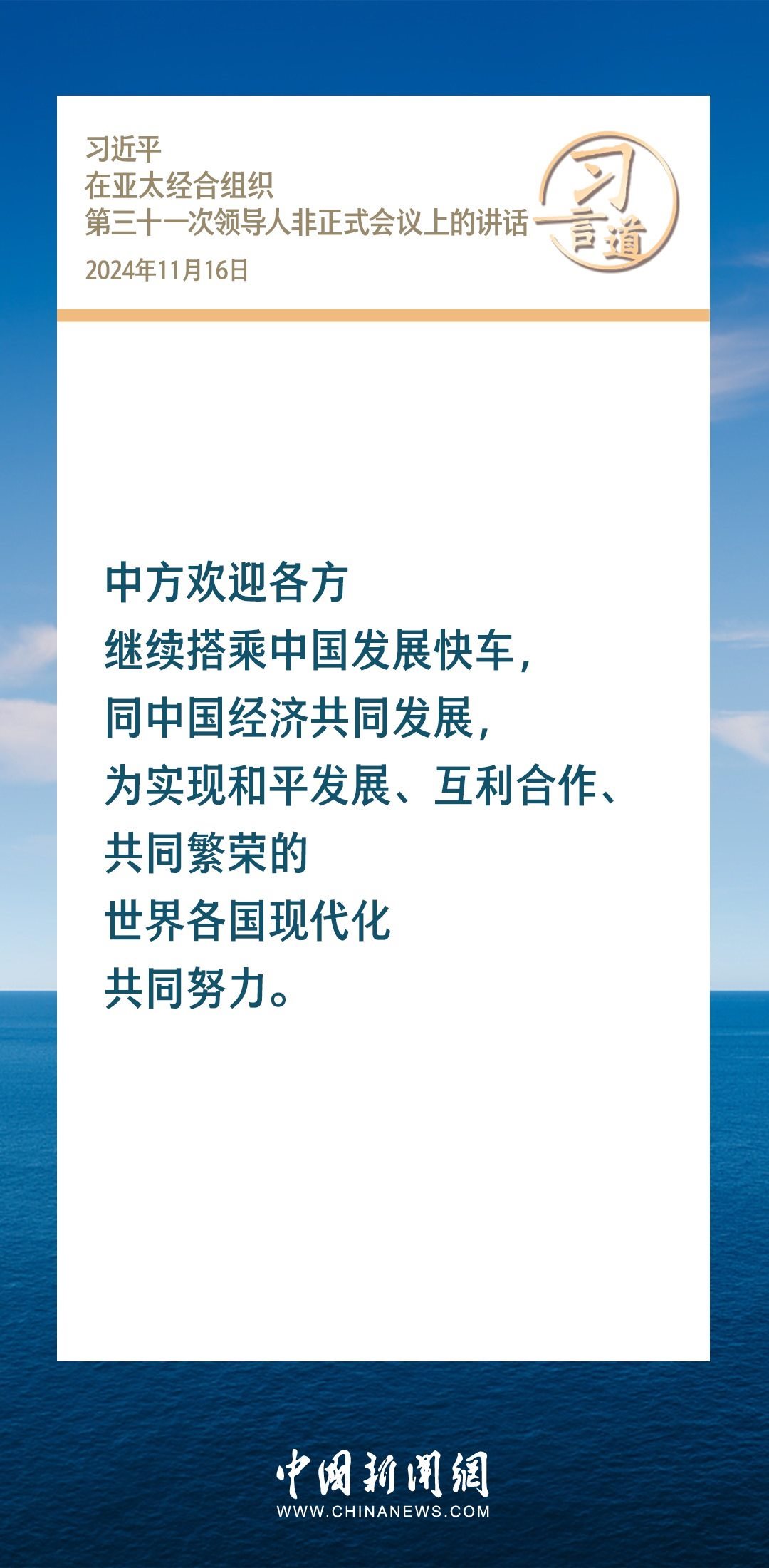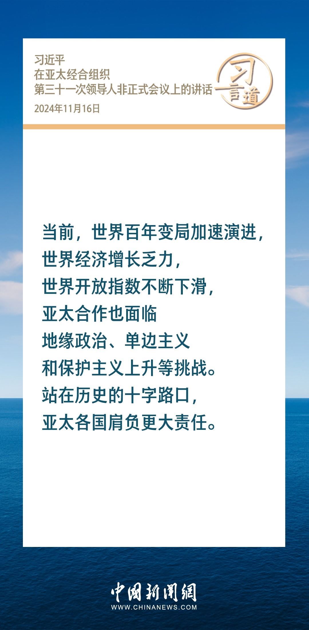 當?shù)貢r間11月16日,國家主席習近平出席亞太經合組織第三十一次領導人非正式會議并發(fā)表重要講話。習近平指出——