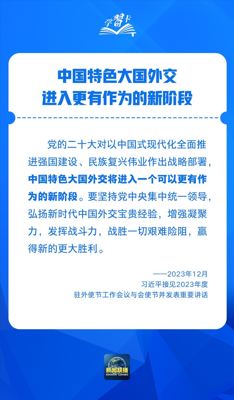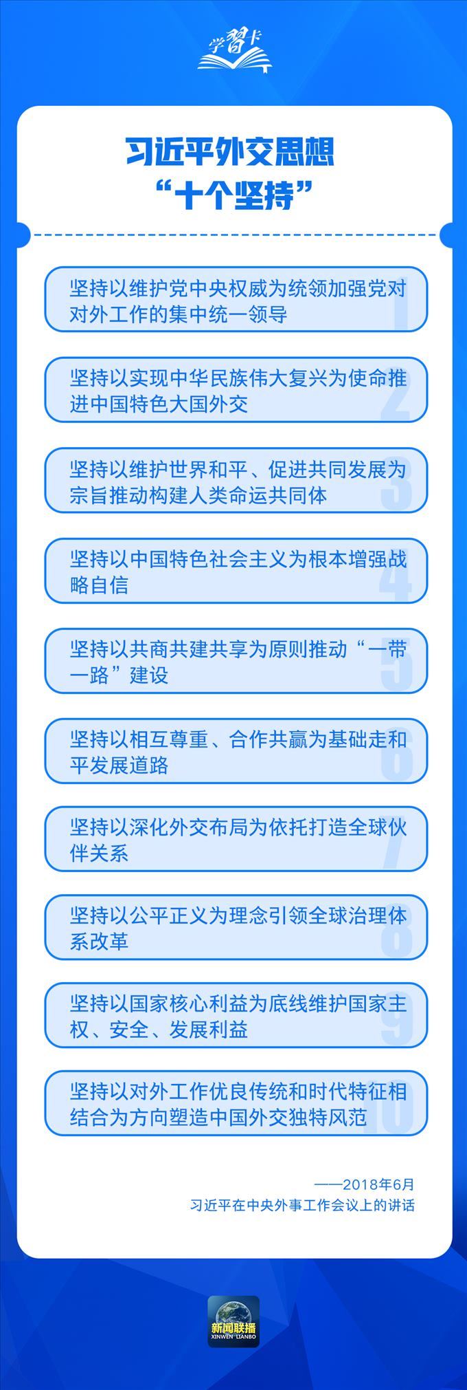 2018年6月召開的中央外事工作會議上,總書記進一步強調(diào),堅持以實現(xiàn)中華民族偉大復(fù)興為使命推進中國特色大國外交,會議確立了習(xí)近平外交思想的指導(dǎo)地位。