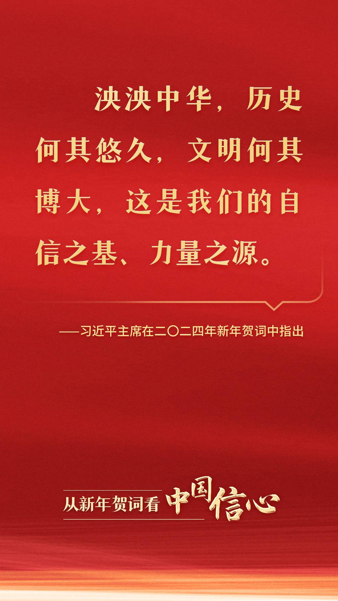 時隔10年,習(xí)近平主席在二〇二四年新年賀詞中深刻指出:“泱泱中華,歷史何其悠久,文明何其博大,這是我們的自信之基、力量之源?!?/p>