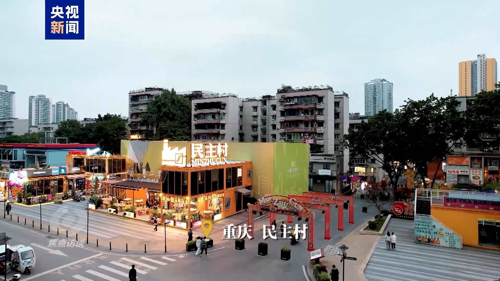 2025年的蛇年春節(jié),是重慶市九龍坡區(qū)民主村社區(qū)更新亮相后迎來的第二個(gè)春節(jié),這里聚滿人間煙火,像極了記者記憶中“過年趕場(chǎng)”的畫面。穿過牌坊走進(jìn)社區(qū),火鍋店、手工藝品、小吃店、咖啡館等各種小攤一字排開,來自四面八方的人們走走停?!肮涑怨涑浴?。