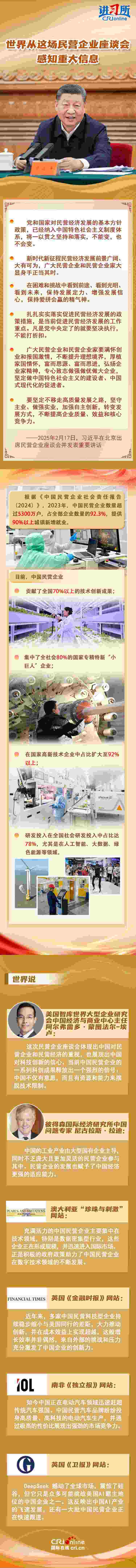 2月17日,中國為民營企業(yè)高質(zhì)量發(fā)展專門召開了一場最高規(guī)格的座談會。中共中央總書記、國家主席習(xí)近平出席座談會,聽取6名知名民營企業(yè)家就新形勢下促進(jìn)民營經(jīng)濟(jì)發(fā)展的建議和意見,并發(fā)表重要講話。