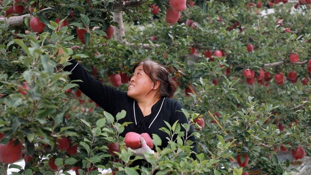 在甘肅天水,豐收時節(jié)的果實綴滿枝頭。火紅的蘋果,連接著鄉(xiāng)村全面振興的美好未來。