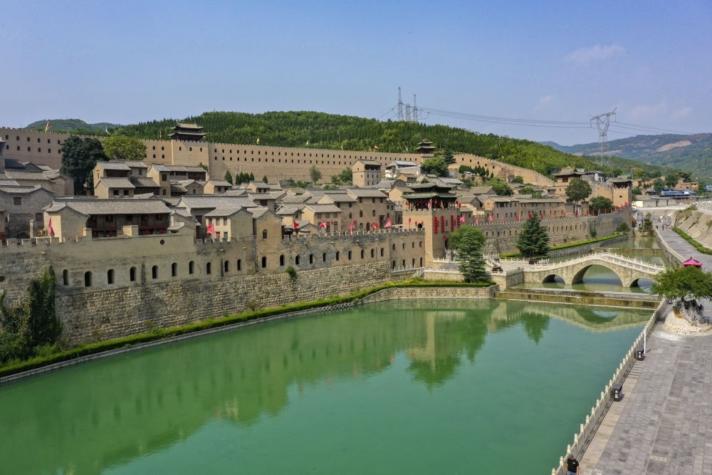 2024年7月17日,游客在太原古縣城游覽(無人機照片)。