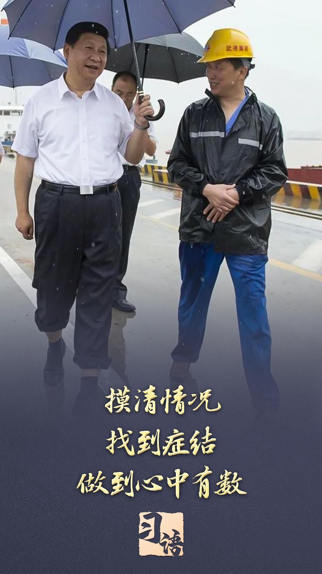 2013年7月,習(xí)近平總書記冒雨來到湖北武漢新港陽邏集裝箱港區(qū)考察,他卷起褲腿,打著雨傘,蹚著積水邊走邊看邊問。兩天后,在武漢主持召開部分省市負(fù)責(zé)人座談會時,習(xí)近平總書記強(qiáng)調(diào):“研究、思考、確定全面深化改革的思路和重大舉措,刻舟求劍不行,閉門造車不行,異想天開更不行,必須進(jìn)行全面深入的調(diào)查研究?!?/p>