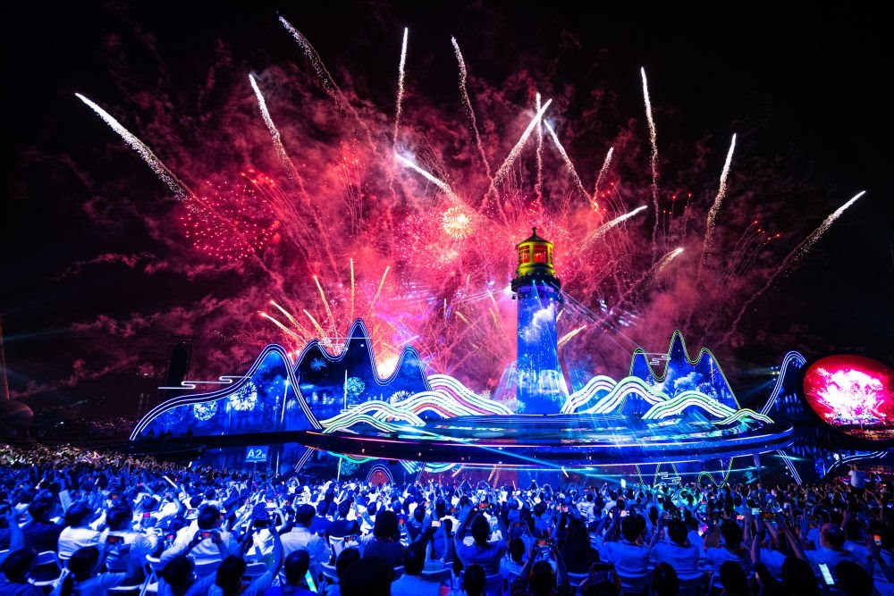 2023年9月16日,第十四屆中國長(zhǎng)江三峽國際旅游節(jié)在湖北宜昌市燈塔廣場(chǎng)開幕,這是觀眾在開幕式現(xiàn)場(chǎng)觀看表演。生態(tài)搭臺(tái)、文旅唱戲,長(zhǎng)江三峽國際旅游節(jié)是近些年三峽庫區(qū)把綠水青山轉(zhuǎn)變成“金山銀山”的生動(dòng)寫照。