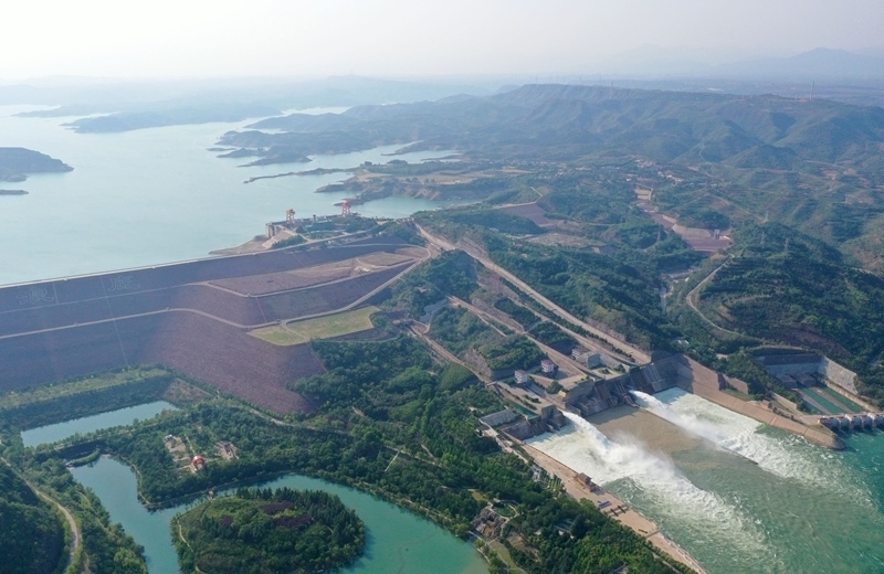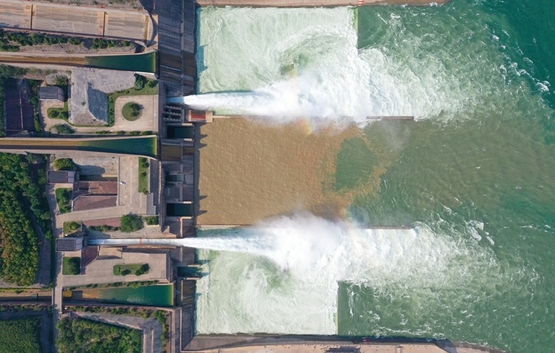 這是6月23日在河南濟源拍攝的小浪底水利樞紐工程調水調沙現場(無人機照片)。